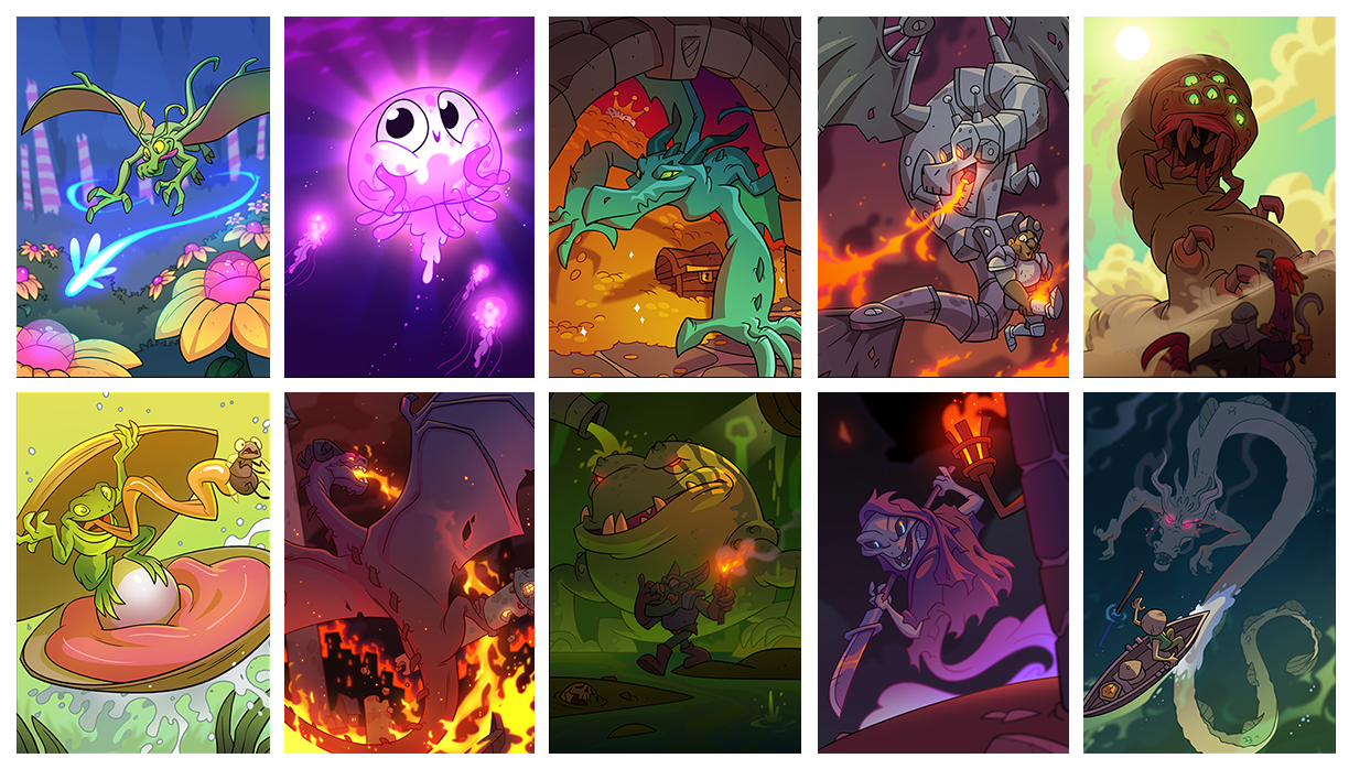 I had a creative brief for each card and every card needed an upgraded version. The producers on the project where very open to creative solutions; often I got to decide how to push the upgraded cards. My favorites are the cards that had a strong narrative so that I could create a conclusion to its story with the upgrade.